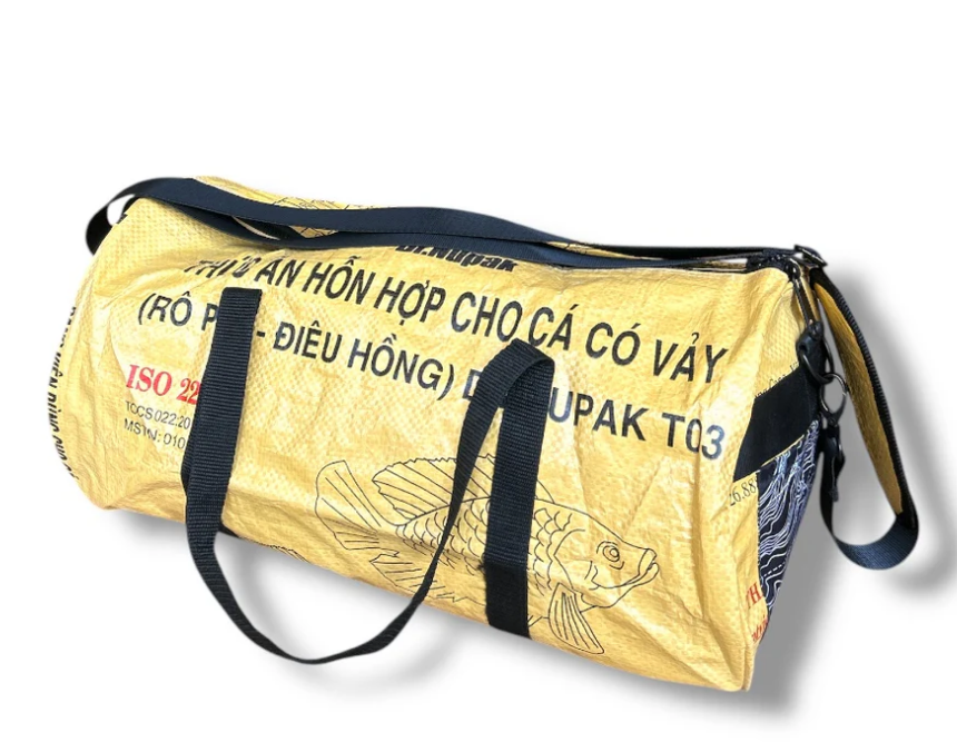 Medium Upcycled Duffel Bag, repurposed Feed Bag, Saves Landfill Space!