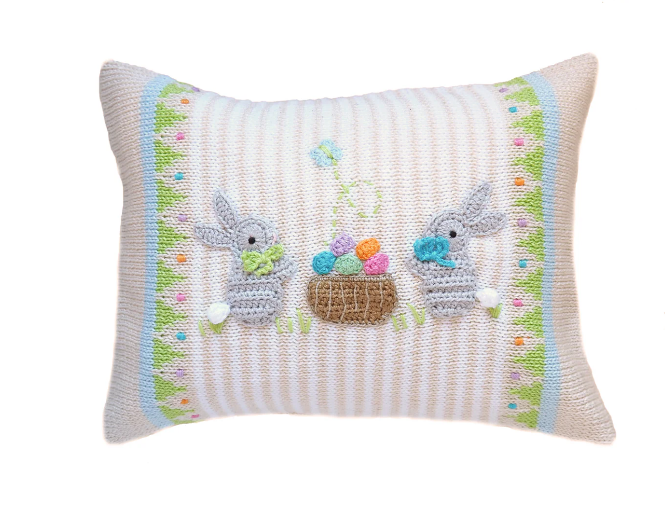 This bunny pillow in soft pastels will surely delight your little one or add a soft Easter look to your home!