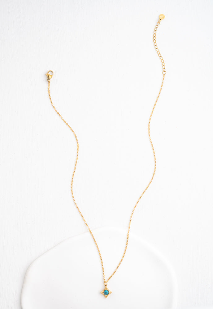 Compass Rose Necklace with a gorgeous turquoise stone and 14K gold plating—your wrist's new best friend for finding your way (literally and figuratively). This adjustable beauty combines wanderlust vibes with everyday elegance, making it the perfect companion for adventures big and small.