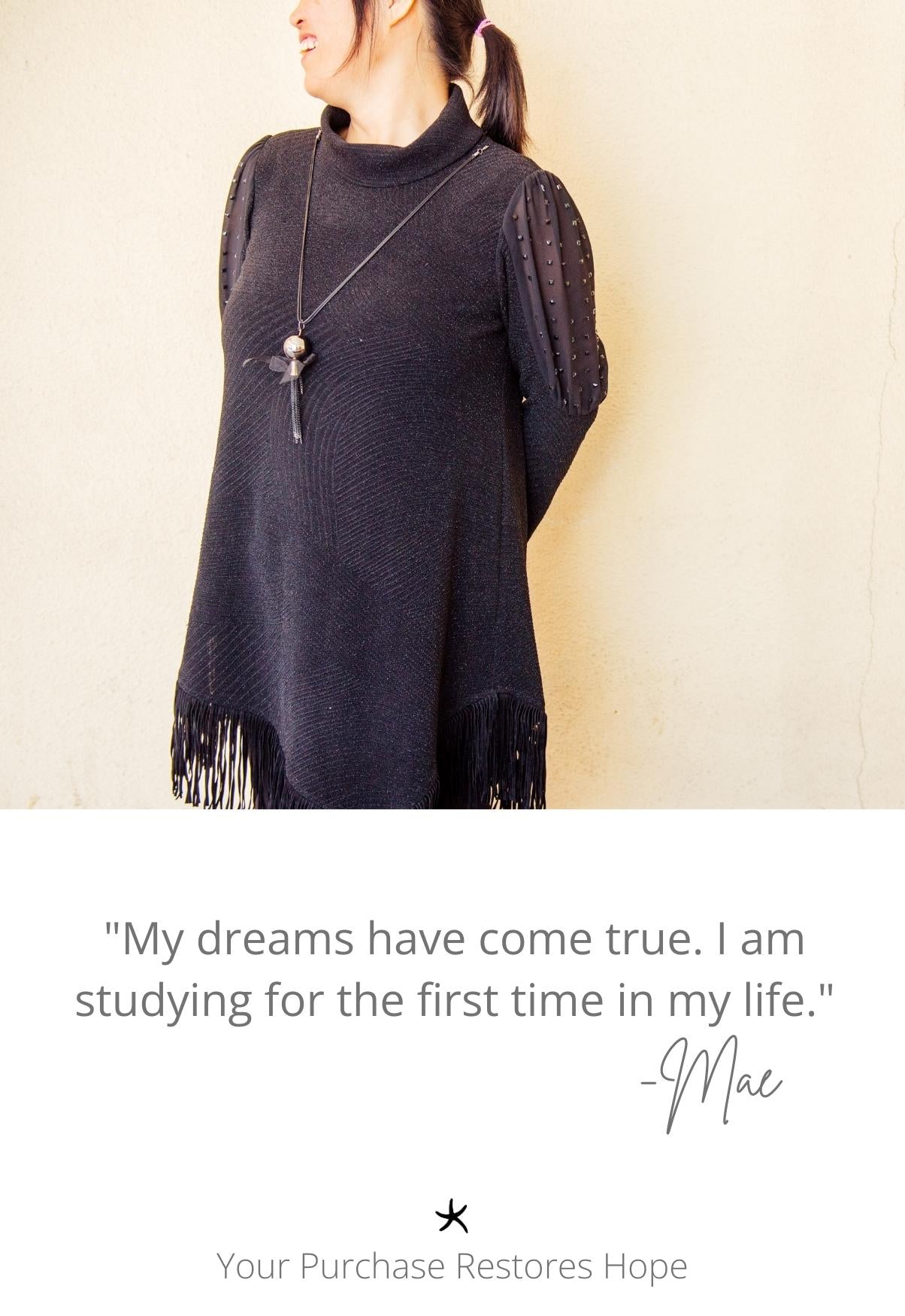 Every purchase of this necklace means exploited women and girls can begin developing careers. Because of your purchase, exploited women and girls will experience freedom & establish independence.