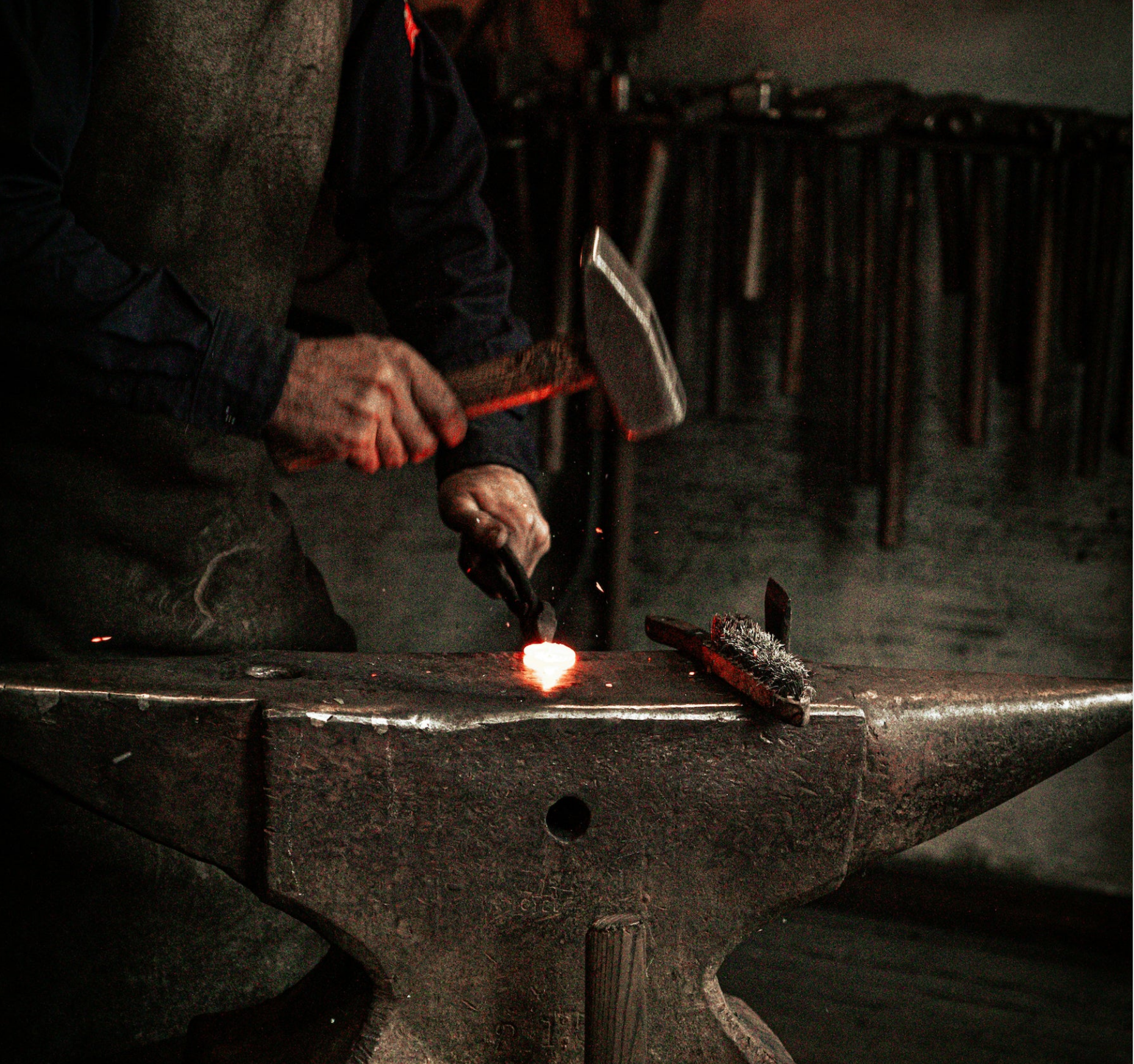 Forged in fire and meticulously shaped by hand, every piece bears the distinctive hammer marks that celebrate its expert craftsmanship. "