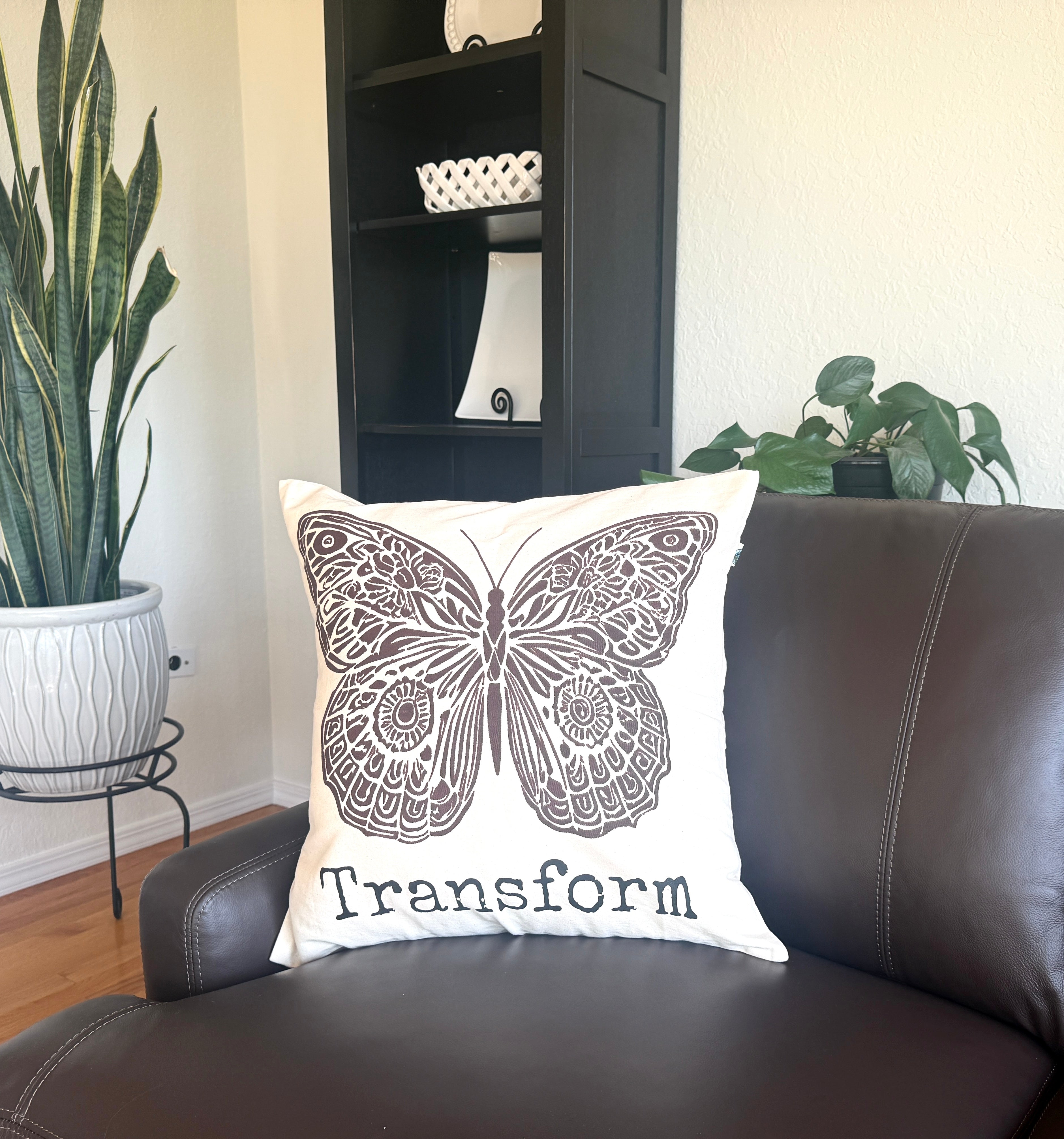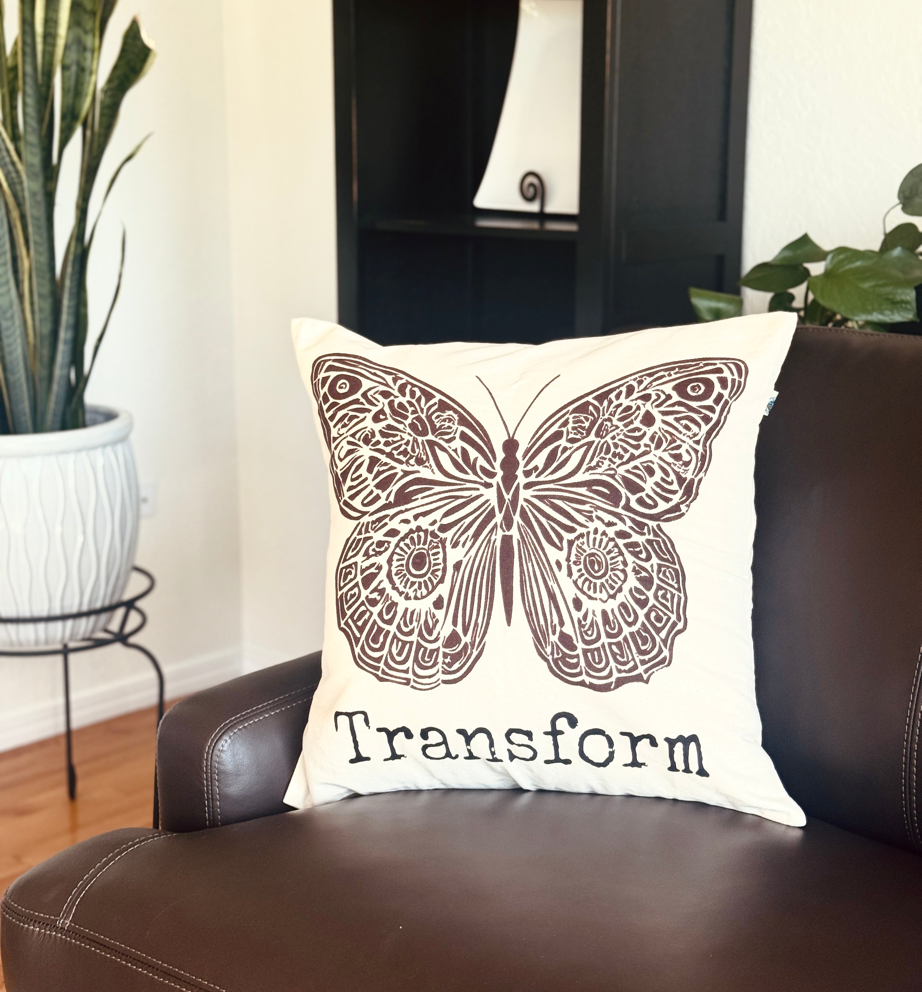 This inspirational butterfly-transform pillow celebrates growth and change. Its boho-style butterfly motif reminds us that transformation is beautiful and powerful, and every phase of life is a chance to rise, heal, and become something new.