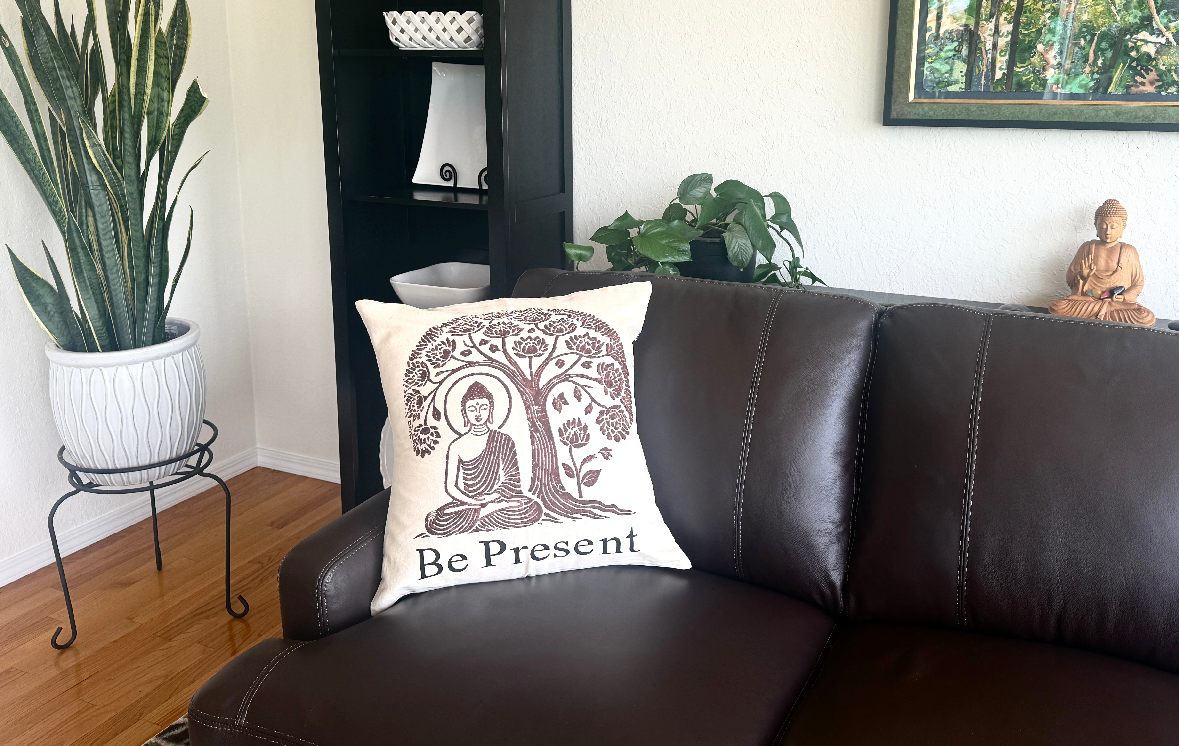 This inspirational "Be Present" Boho-style pillow brings a calming, intentional touch to your living room, bedroom, meditation space, or anywhere you need a gentle reminder to pause, breathe, and embrace the present moment.