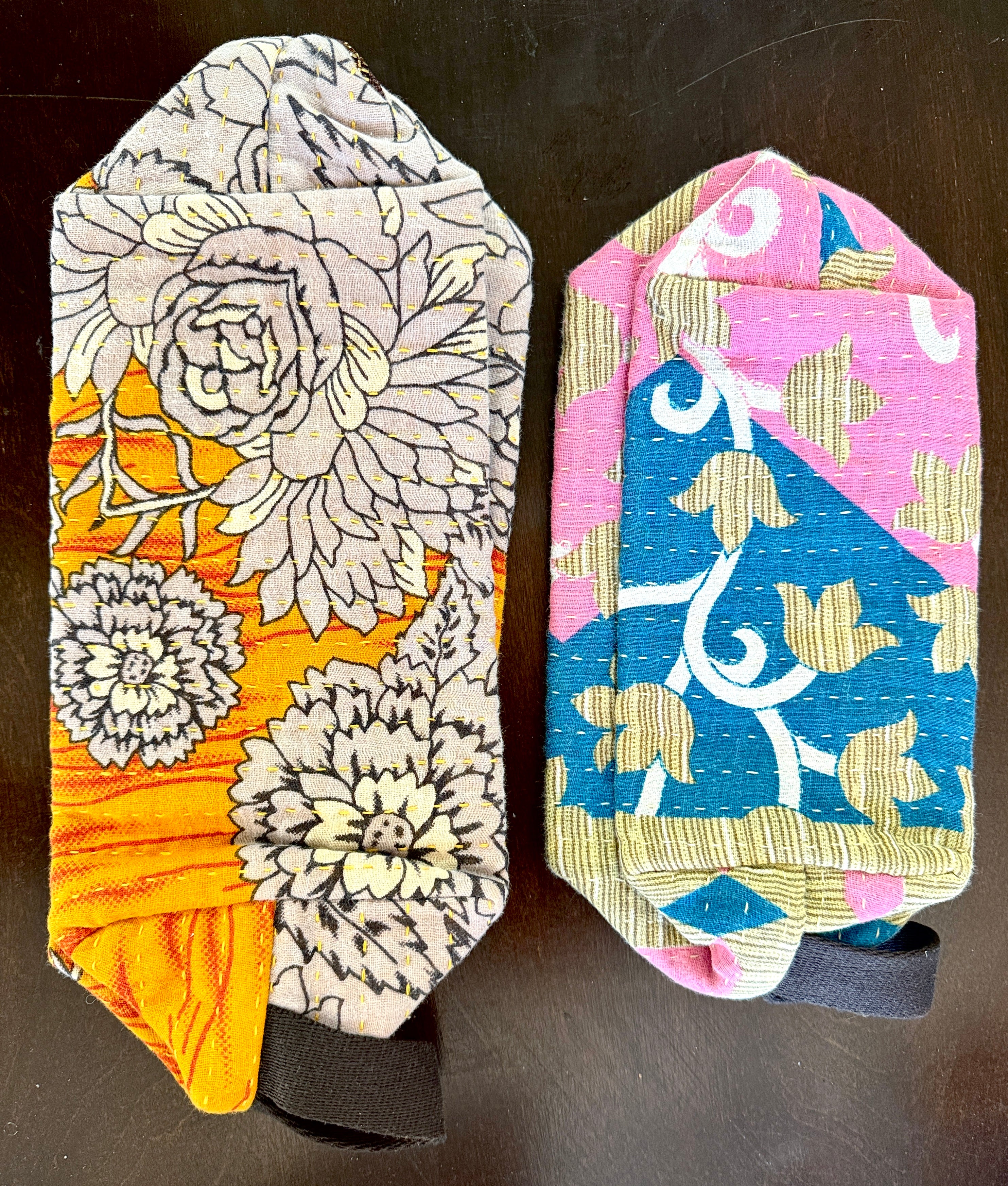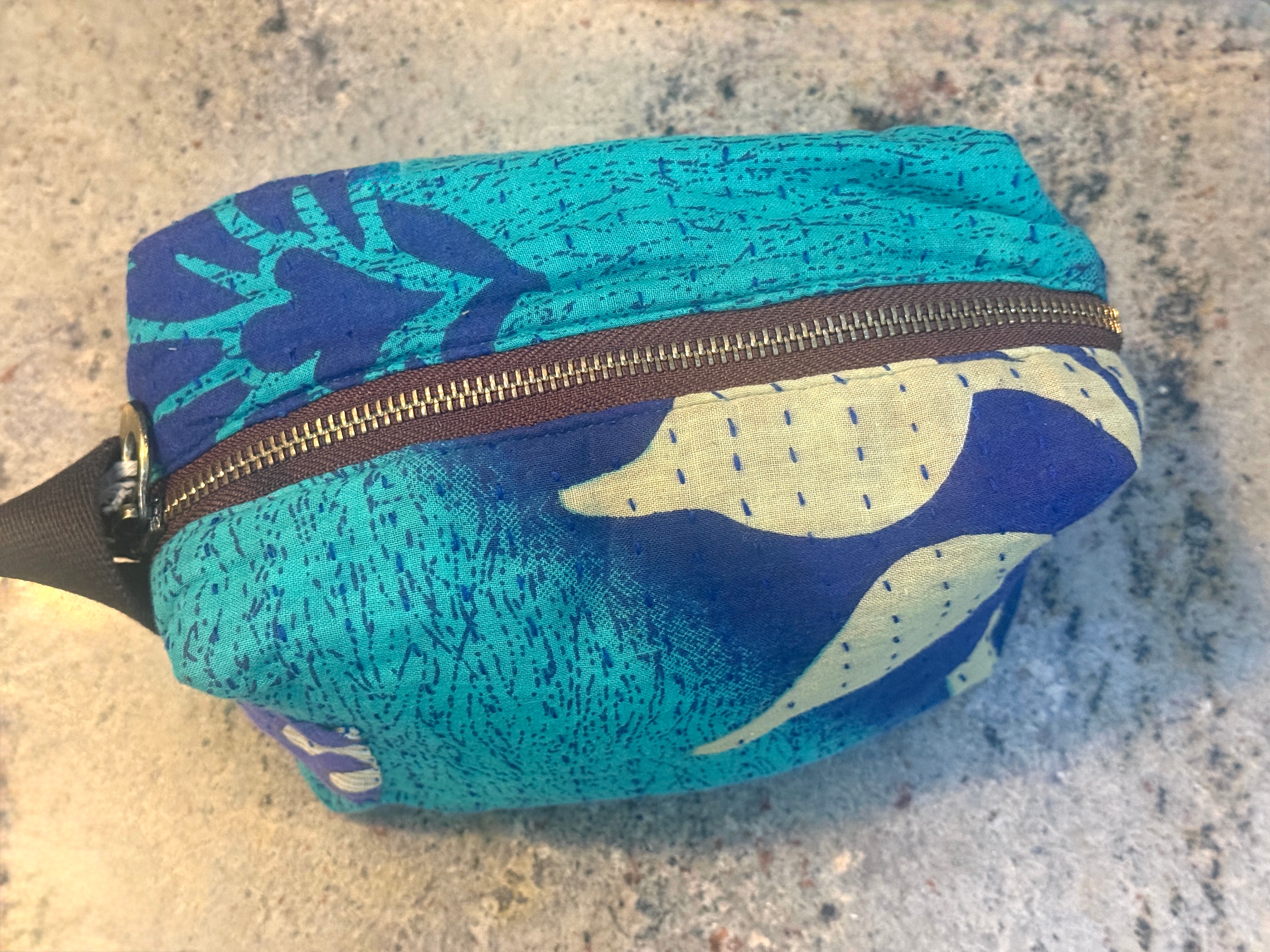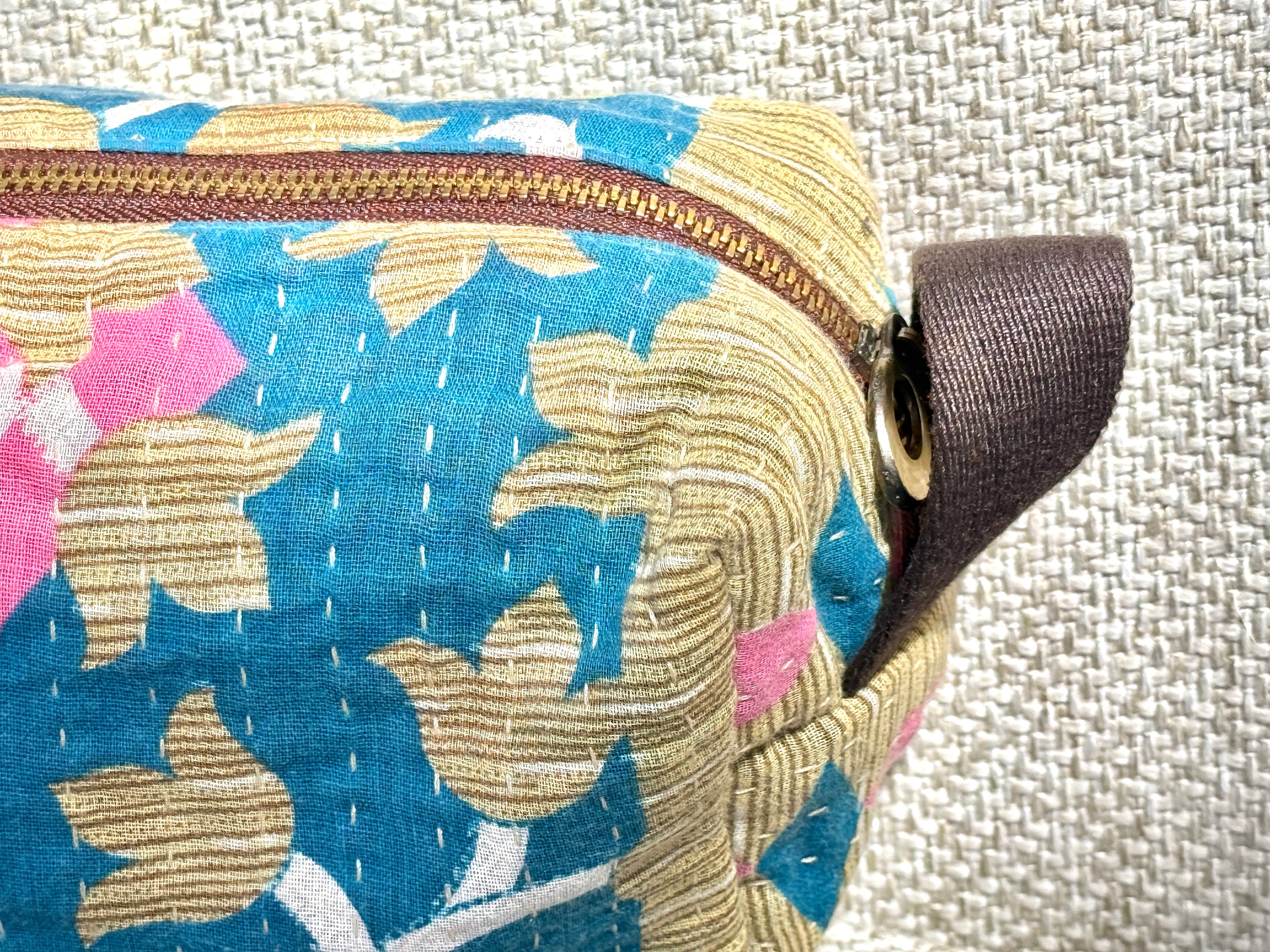 These upcycled sari bags aren’t just for your cosmetics and travel essentials—they’re a symbol of hope and empowerment, lovingly handcrafted in Kolkata, India, by courageous survivors of human trafficking who are rebuilding their lives through dignified work. Each bag is hand-stitched from upcycled sari fabric, with added decorative Kantha-style stitching, transforming remnants of the past into something entirely new.