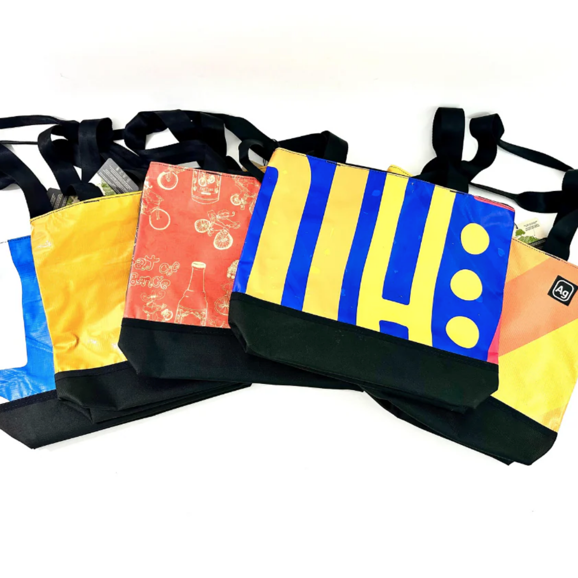 Upcycled Billboard Zipper Top Tote Bag- Large, Sustainable